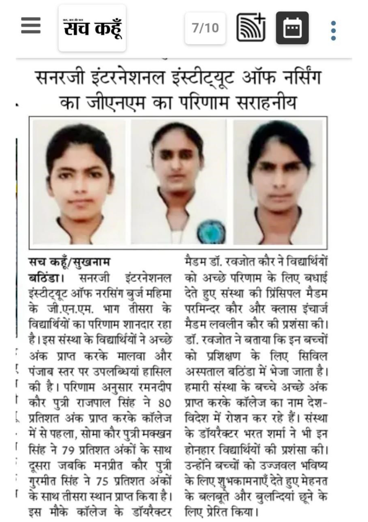 Synergy Nursing Institute Muktsar Road, Bathinda – 151001, Punjab, India